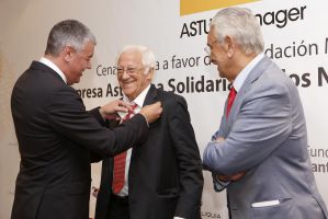 La cena benéfica, celebrada en Gijón, contó con la participación de más de un centenar de personas que, además, fueron testigos del homenaje que el Club ASTURmanager quiso rendir al Padre Ángel y a su incansable labor con los niños, con nuestros mayores y las personas en situación marginal en general. Tras la glosa realizada por un gran conocedor de la labor del sacerdote diocesano como es Serafín Abilio Martínez, presidente de la Fundación Cruz de los Ángeles, el presidente de ASTURmanager, Belarmino Feito, le impuso al Padre Ángel la insignia de oro y brillantes del Club.