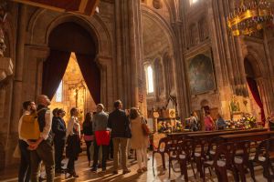 El pasado viernes 27 de septiembre un grupo de socios del club tuvimos el enorme privilegio de conocer los secretos mejor guardados del lugar más visitado de nuestra comunidad, Covadonga. De la mano de Javier Remis, director del Museo de Covadonga, pudimos visitar, entre otros, espacios como La Colegiata, el Museo o la Cripta de la Basílica y auténticas joyas de Asturias como la imagen original de la Virgen de Covadonga o la colección de pinturas que Madrazo realizó por encargo de Isabel II de toda la dinastía de reyes y reinas de Asturias.