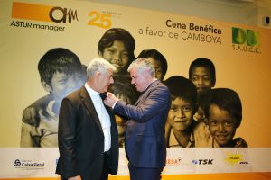 Durante la cena benéfica, el Club ASTURmanager quiso reconocer y homenajear a Monseñor Enrique “Kike” Figaredo por la labor que realiza en Camboya desde más de 30 años, motivo por el que le fue impuesta la insignia de oro y brillantes del Club.
