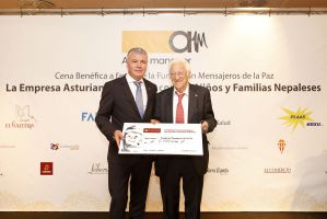 El Padre Ángel fue el encargado de recoger el cheque de 8.000 euros recaudado con motivo de una cena celebrada el pasado 17 de julio bajo la premisa “La Empresa Asturiana Solidaria con los Niños y las Familias Nepales”. Más de un centenar de empresarios de la región se hicieron eco de la necesidad de este país colaborando bien como patrocinadores, como es el caso de El Gaitero, Gruas Roxu, La Federación Asturiana de Empresarios y la Fundación Banco Santander Salud/Banco Santander, bien como colaboradores.