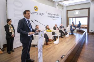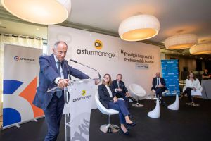 Durante el acto, celebrado en el Palacio de La Riega, intervinieron los patrocinadores de él, Pablo Junceda, del Banco Sabadell y Belarmino Feito, vicepresidente de Asturgar, así como, María Calvo, presidenta de la Fade y Montserrat Martínez, presidenta de ASTURmanager.