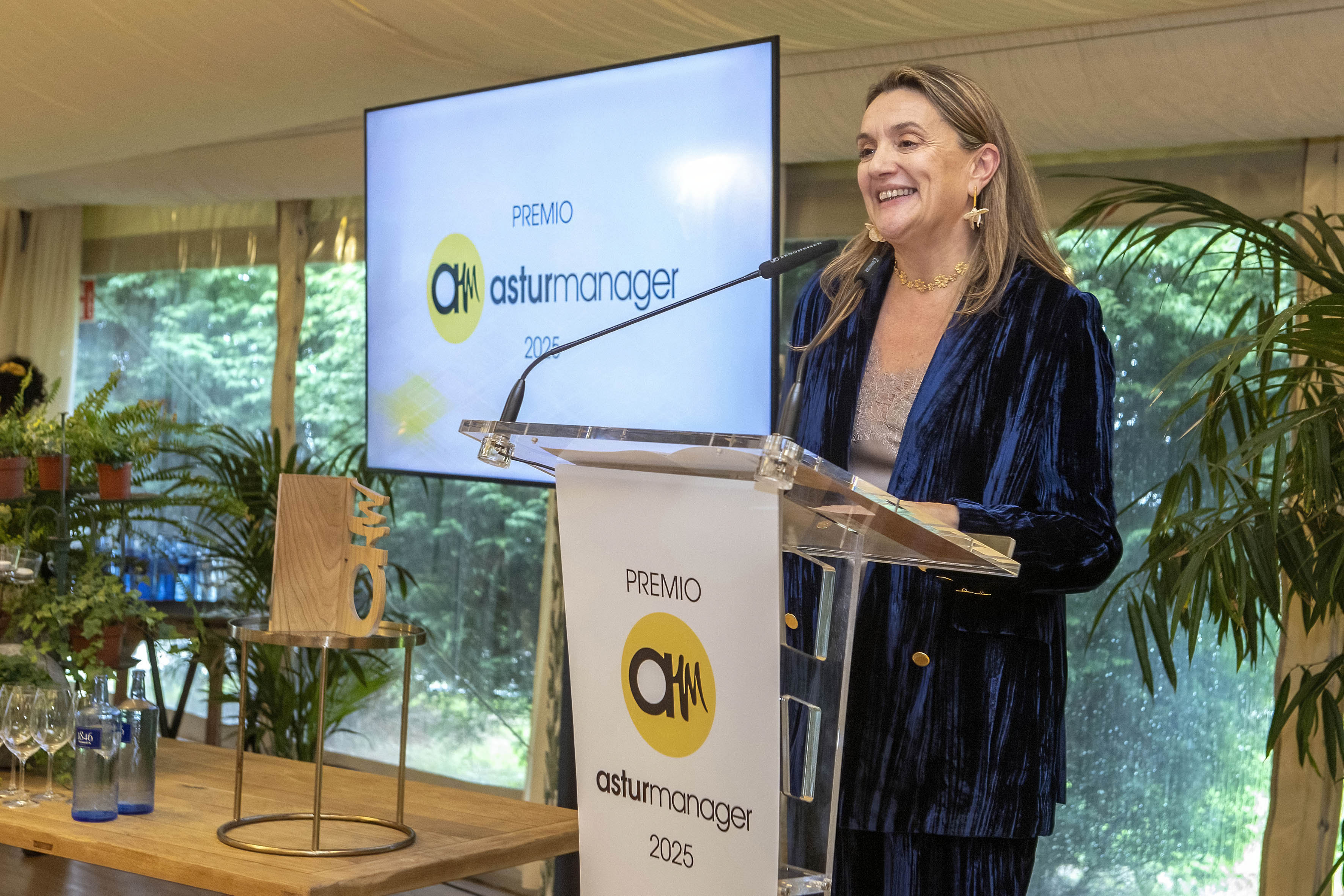 Teresa Fernández Marmiesse recibió el Premio ASTURmanager XXIX, muy emocionada y rodeada por parte de su extensa familia.